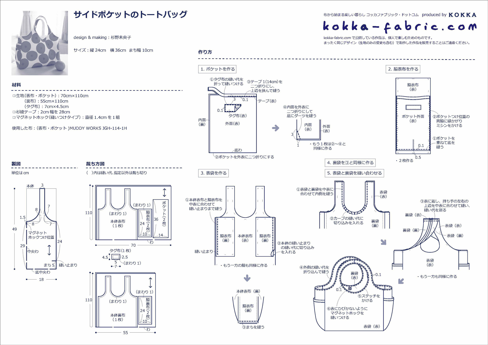 KF:杉野さん、どうもありがとうございました!サイドポケットのトートバッグの作り方プロセスも杉野さんに撮影していただきましたので、ぜひ、作り方シート(PDF)と合わせて参考にしてくださいね。