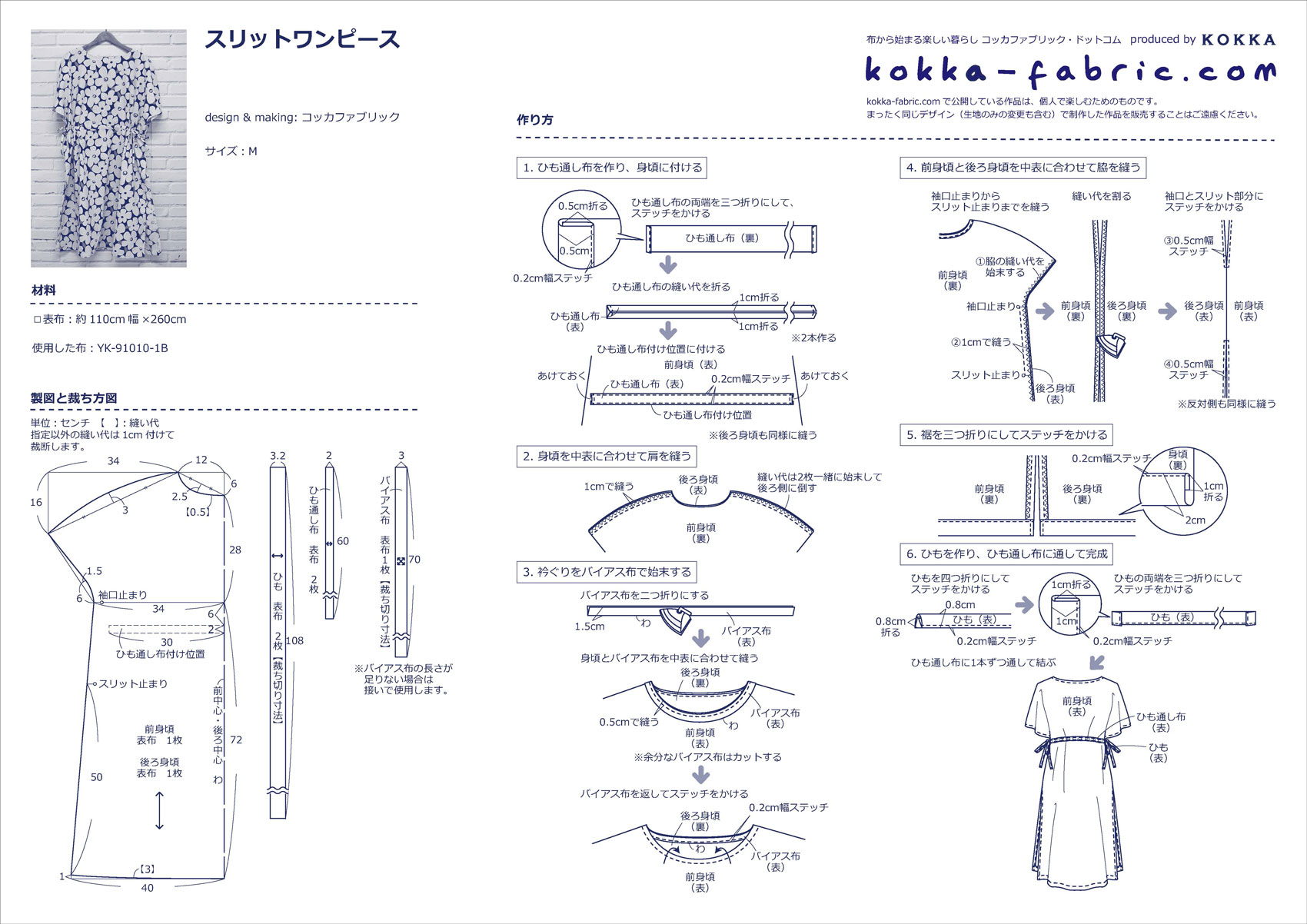 深めスリットとウエストのリボンがポイント♪ スリットワンピースの作り方