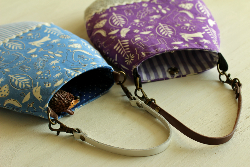 動物やキノコがとっても可愛くて、ちょっと北欧っぽいなぁと思ったので、青い方を北欧の森の夏、紫の方を森の冬のイメージで作ってみました。