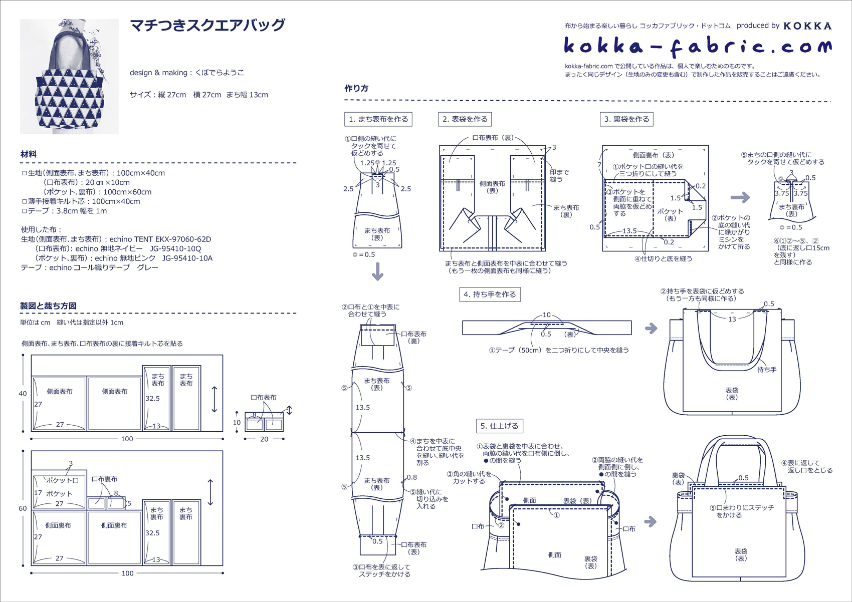 KF:くぼでらさん、どうもありがとうございました!マチつきスクエアバッグの作り方プロセスもくぼでらさんに撮影していただきましたので、ぜひ、作り方シート(PDF)と合わせて参考にしてくださいね。