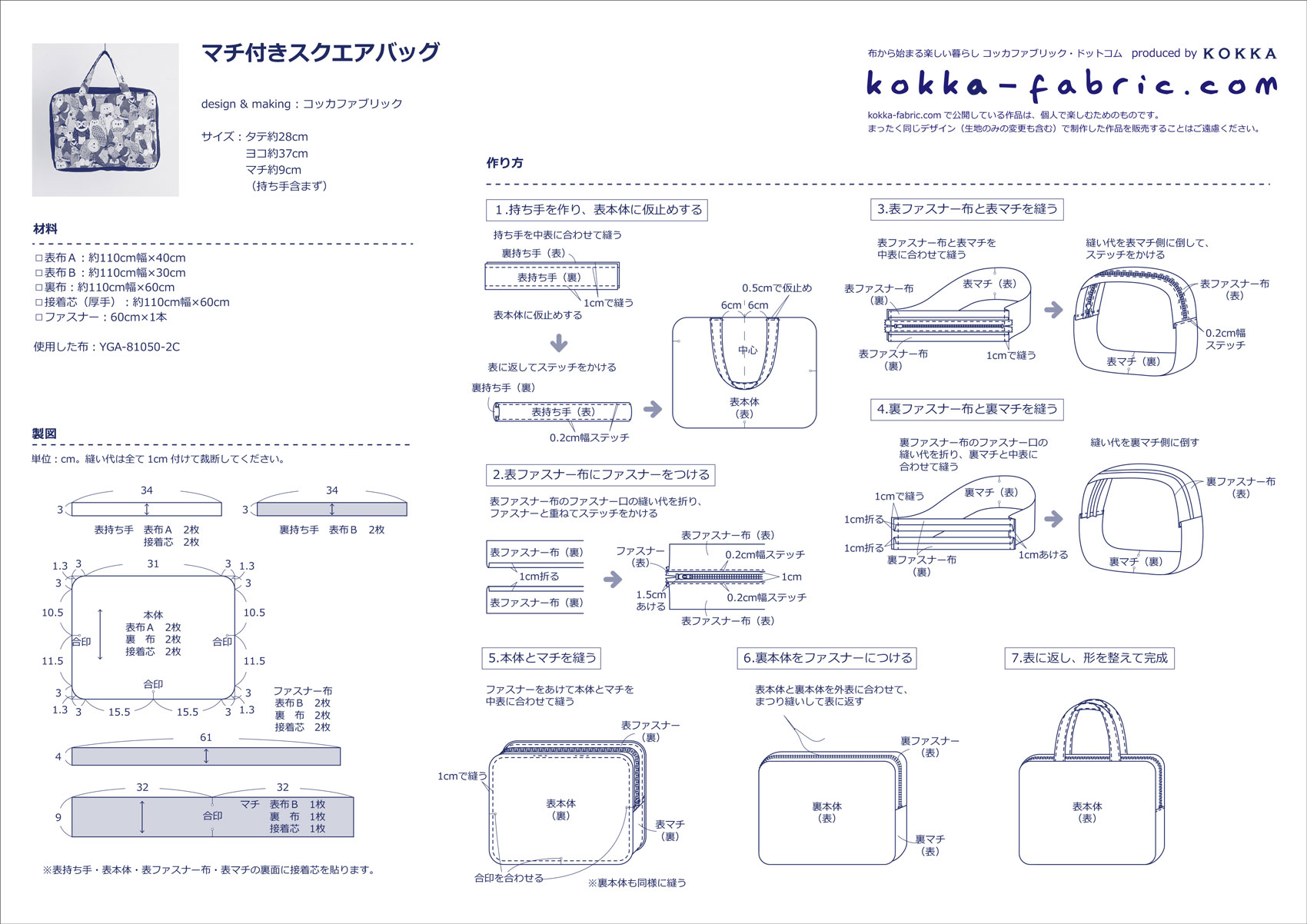60cmファスナーでしっかり収納♪ マチ付きスクエアバッグの作り方
