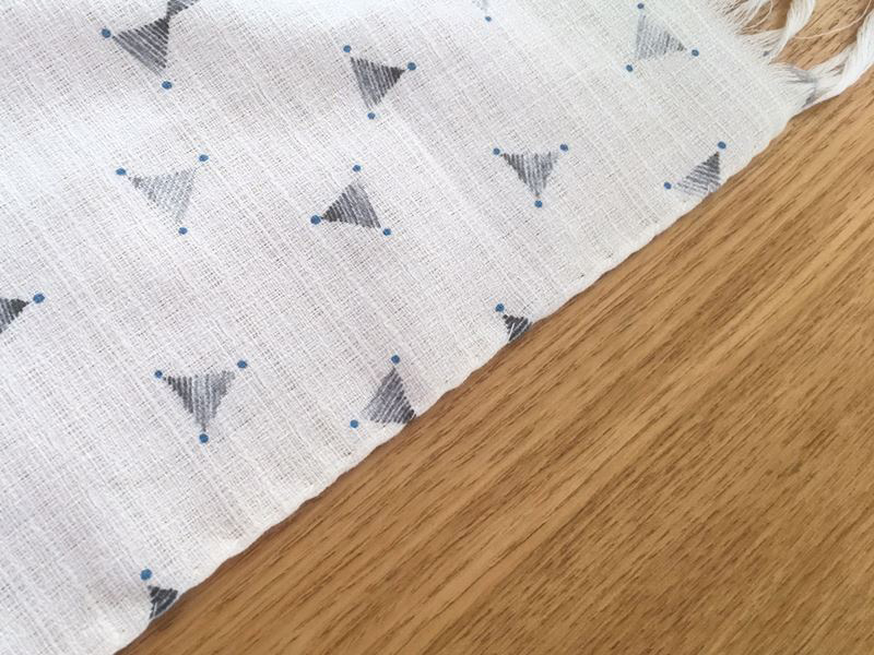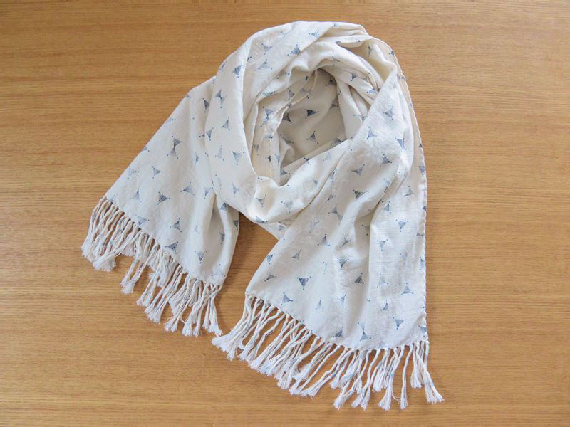 単なる長方形を切り出して作りますが、手縫いで仕上げることで、手縫いならではの柔らかさを狙っています。私感ですが、ストールに関しましては、ミシンより手縫いが向いています。