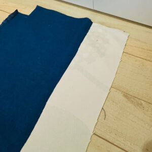 裏袋を作ります。裏布(27×40cm)と見返し(8×40cm)を中表で縫い合わせる前の配置。