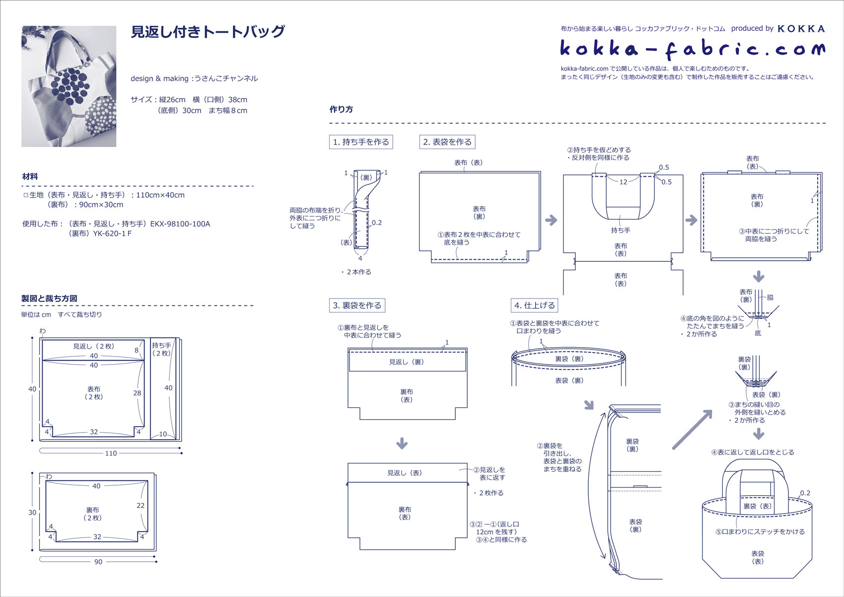 KF:うさんこチャンネルさん、どうもありがとうございました!見返し付きトートバッグの作り方プロセスもうさんこチャンネルさんに撮影していただきましたので、ぜひ、作り方シート(PDF)と合わせて参考にしてくださいね。