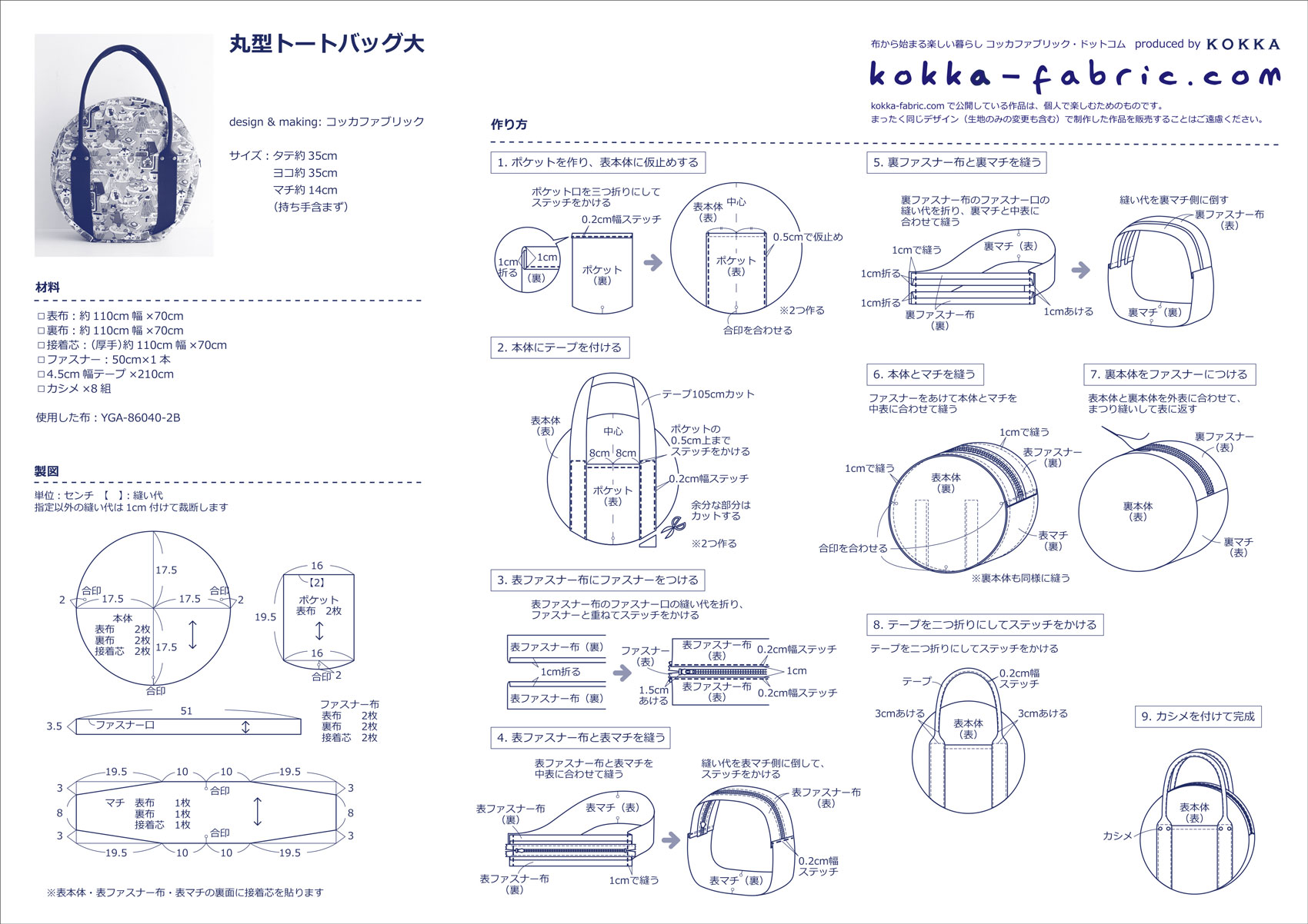 まあるいフォルムがキュート♪ 丸型トートバッグの作り方
