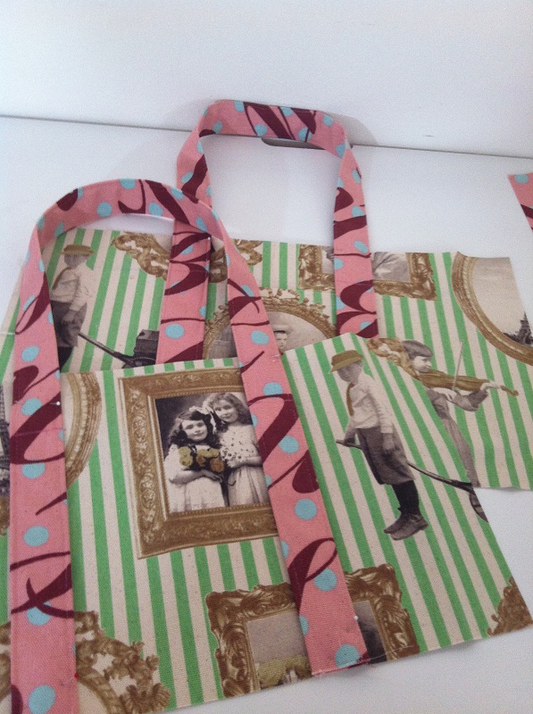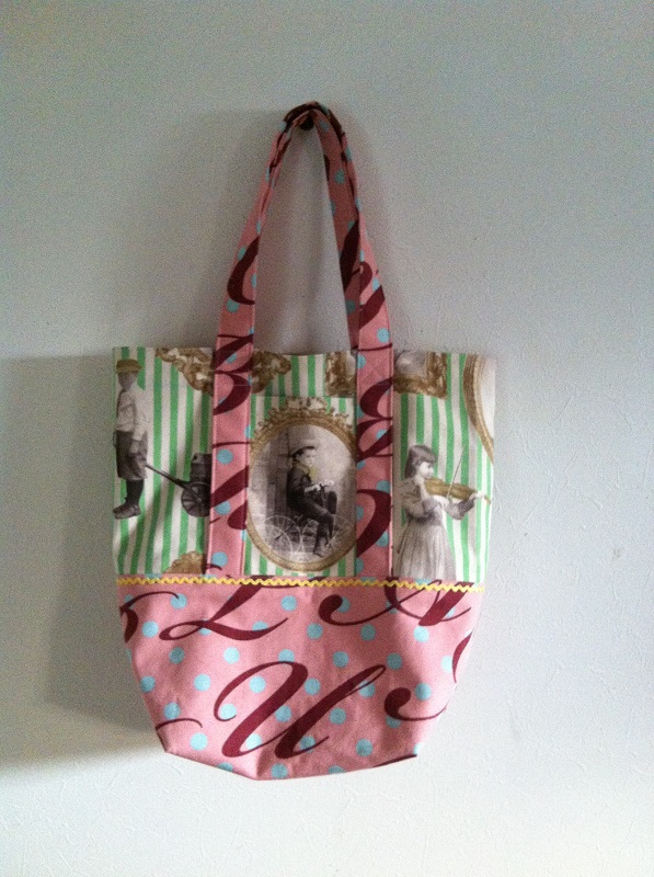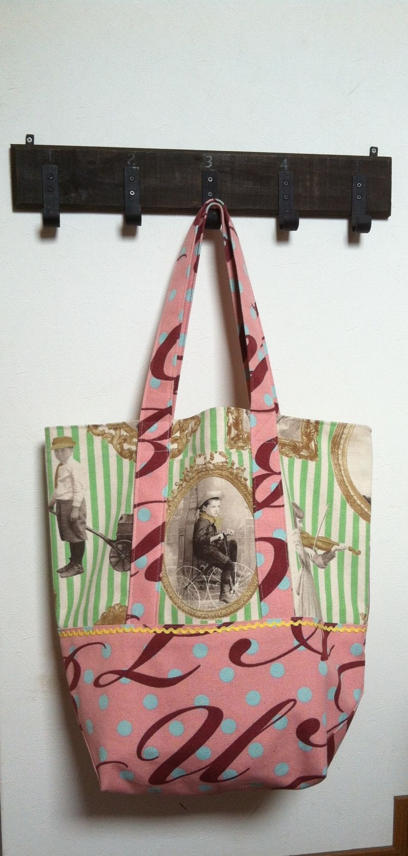 今回はシックなパリ柄「Ecole de Paris」を使ったトートバッグを紹介します。パリの昔のポートレートや筆記体の文字をモチーフしたこの布は、古き良きパリの懐かしい雰囲気が漂います。製作してくれたのは、斉藤真澄(sinafuku*)さんです。生地は8号ハンプという、家庭用ミシンで縫える限界の厚さです。