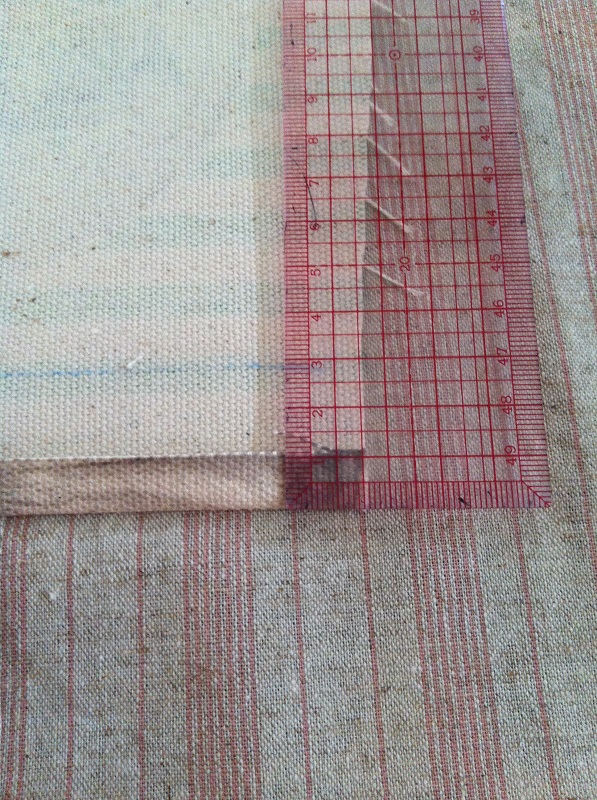 作り方 1.ポケット口部分を三つ折にして端ミシンをかける