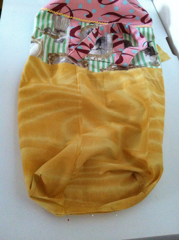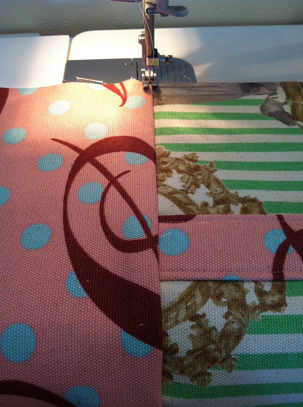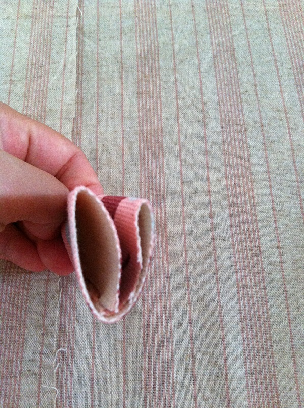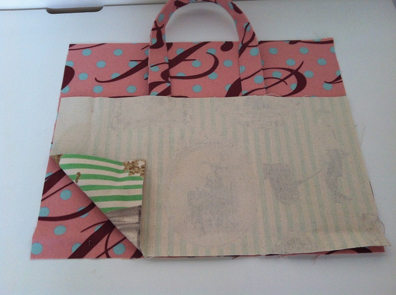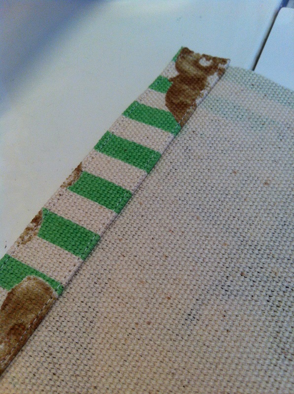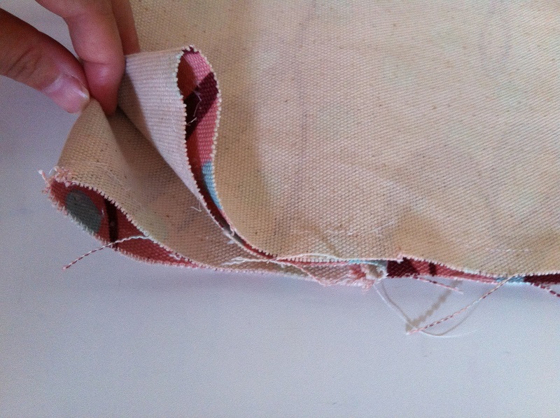 2. 本体上部から5cmは縫わず、コの字に折り返して縫い付ける。