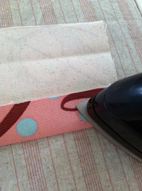 1. 半分に折りアイロンをかける。アイロンでつけた折り目に向かい両端をさらに半分に折る.