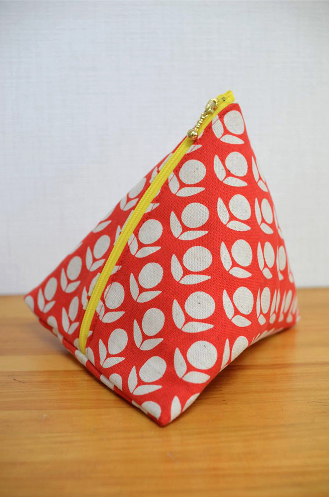 ハンカチサイズくらいの端ぎれで作れるポシェットです。両端を合わせてファスナーをつけ、底と上部を縫うだけの簡単ソーイング。接着キルト芯をつけるとパリッと形よく仕上がります。肩かけ用のひもをつければショルダーポシェットになります。