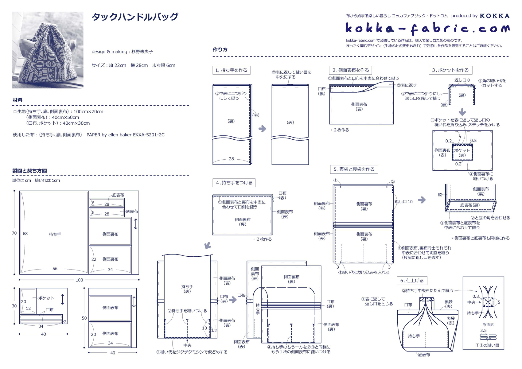 KF:杉野さん、どうもありがとうございました!タックハンドルバッグの作り方プロセスも杉野さんに撮影していただきましたので、ぜひ、作り方シート(PDF)と合わせて参考にしてくださいね。