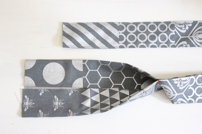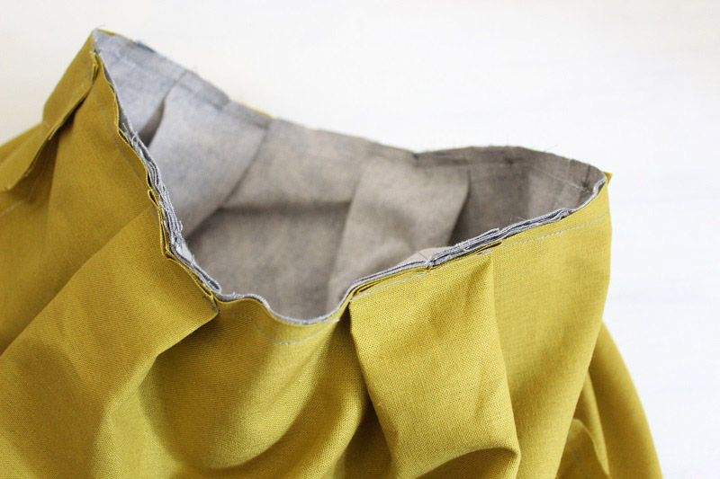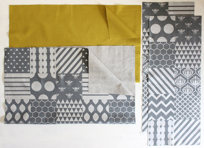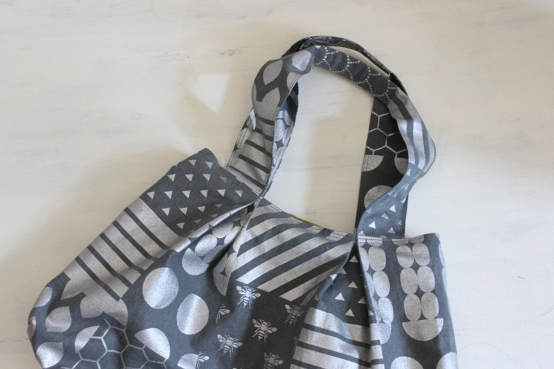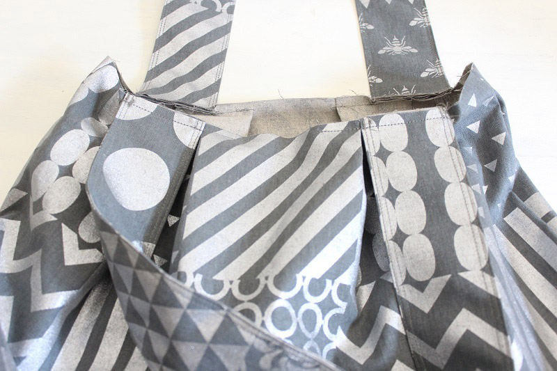 大きなブロック調のデザインを見たときに、サイズを測らなくても簡単にできるタックトートを思いつきました。実際には見た目以上に大きなマスだったので、より大きなトートになりました。持ち手などは全てマスのサイズに合わせたので、サイズを正確に測る必要がないのが利点です。