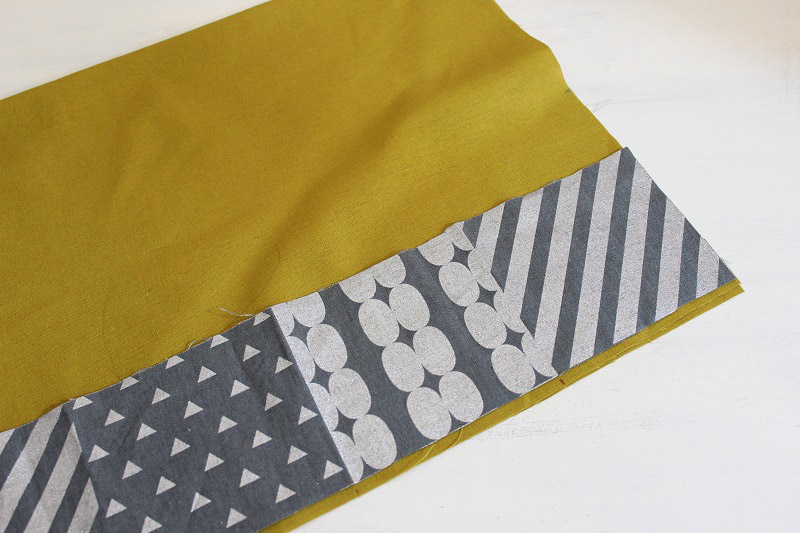 中心のマスを残すようにして、両サイドのマスの中心に折り山を合わせて5mmで仮縫いしておきます。