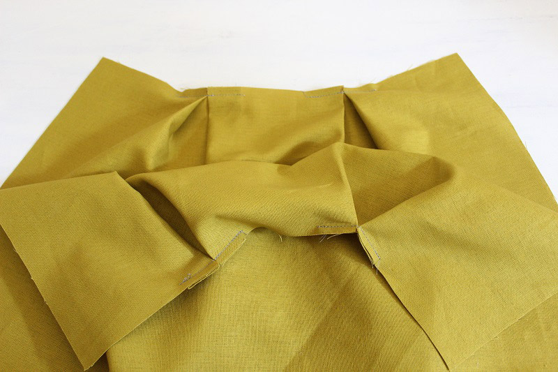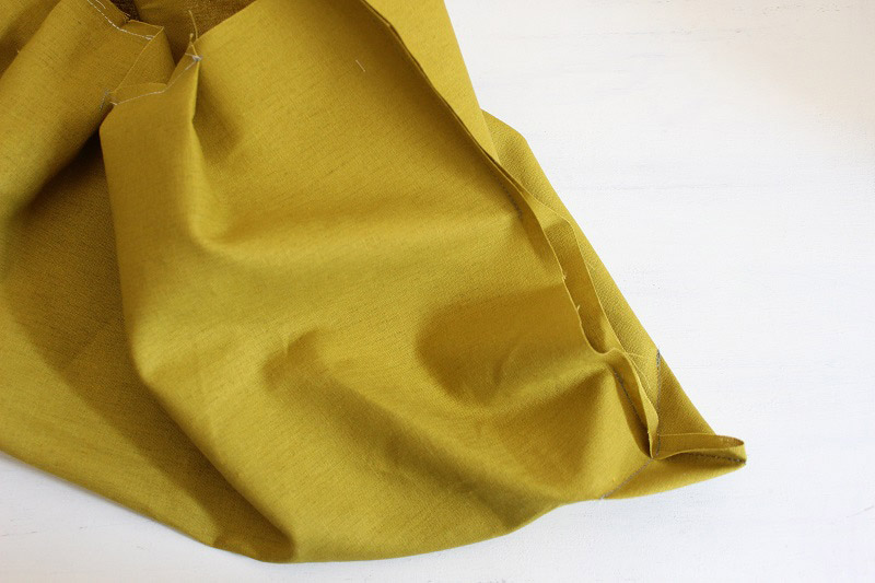 片側のみ返し口を8㎝ほど残して両サイド縫い、底マチを縫います。