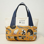 バッグ本体にタックを入れてふんわりと仕上げたトートバッグです。両脇についた外ポケットは、スマホやミニボトルを入れるのに便利♪ 使った布は「Delicious Animal」シリーズ。布いっぱいに並んだおむすびは、よく見ると動物たちが顔を出しています。コットン100%のオックスフォードなので、ソーイング初心者でも縫いやすく、バッグづくりにおすすめです。