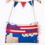 宇宙柄は、色がたくさん入っていて、一見、派手ですが、ベースが黒地なので、じつは何にでも合わせやすく、子どもから大人まで幅広く楽しめます。地球やロケットなど大きめのモチーフは、なるべく切れないようにカット。裏地には黒ではなく、あえて黄色の無地を使って、明るくポップな感じに仕上げました。