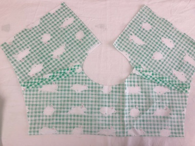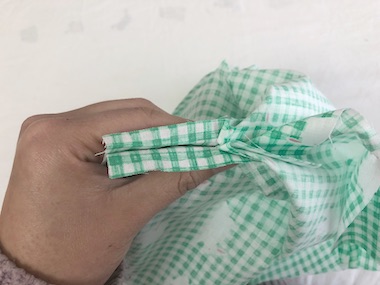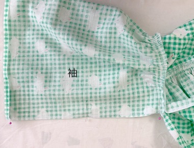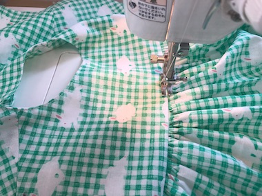 袖山上部0.7cm+1.5㎝に粗ミシン。ギャザーを寄せ、身頃脇に縫い合わせる