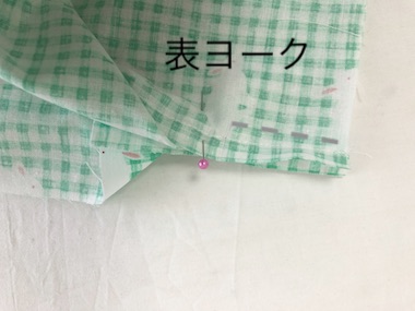前ヨーク、後ろヨークの肩を中表に合わせて縫い、縫い代をアイロンで割る。