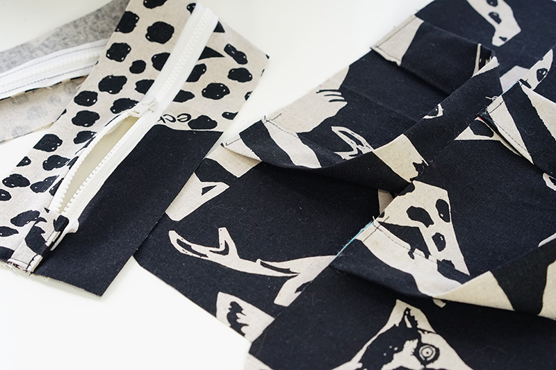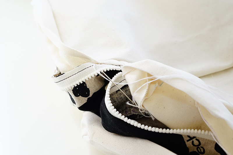 表袋と同様に裏袋を作ります。※ファスナーはつけず、ファスナーつけ位置の縫い代を裏側に折っておきます。