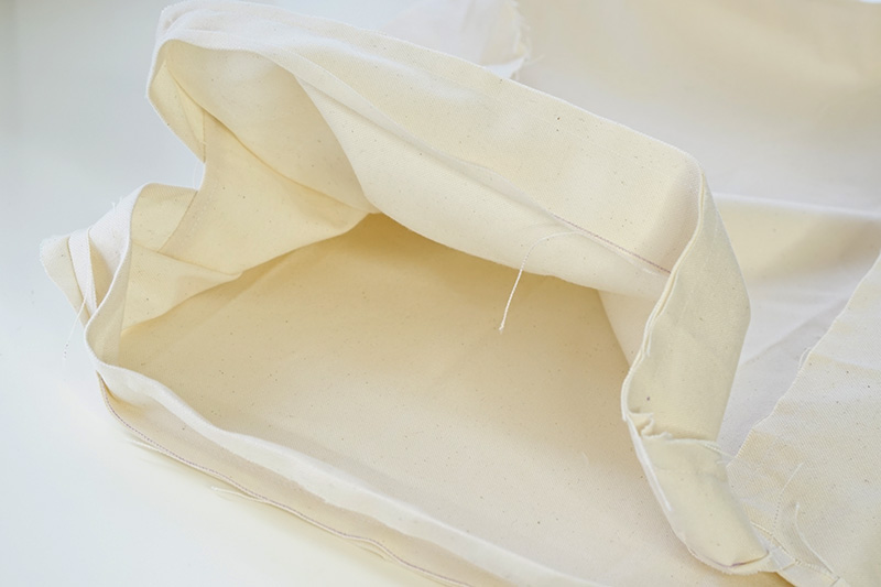 側面とマチを中表に合わせて縫います。表袋の完成です。