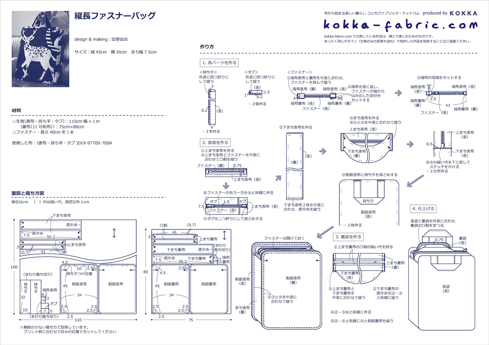 KF:田巻さん、どうもありがとうございました!縦長ファスナーバッグの作り方プロセスも田巻さんに撮影していただきましたので、ぜひ、作り方シート(PDF)と合わせて参考にしてくださいね。
