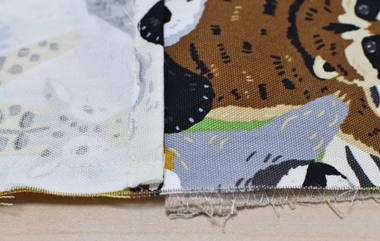 生地を裁断します。キルティング生地のまわりはグルっとジグザグミシンをかけておきます。
