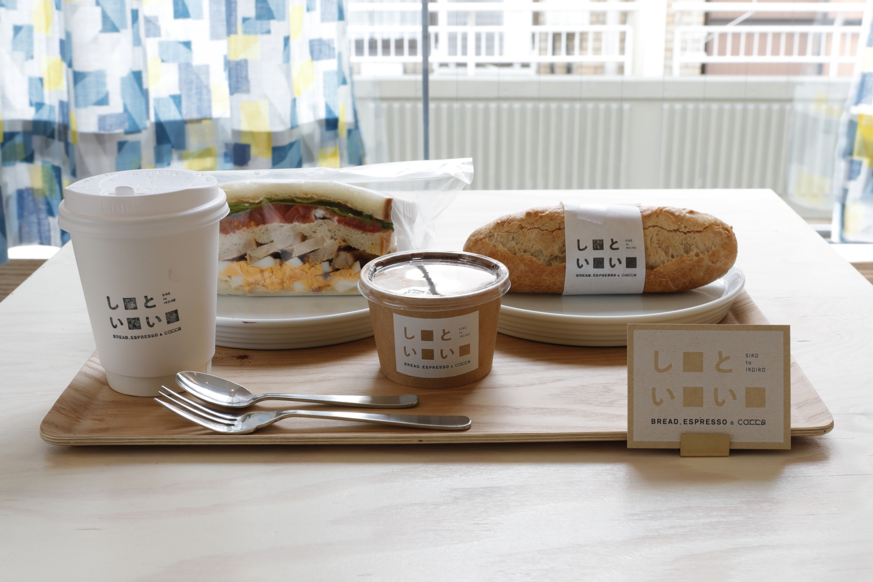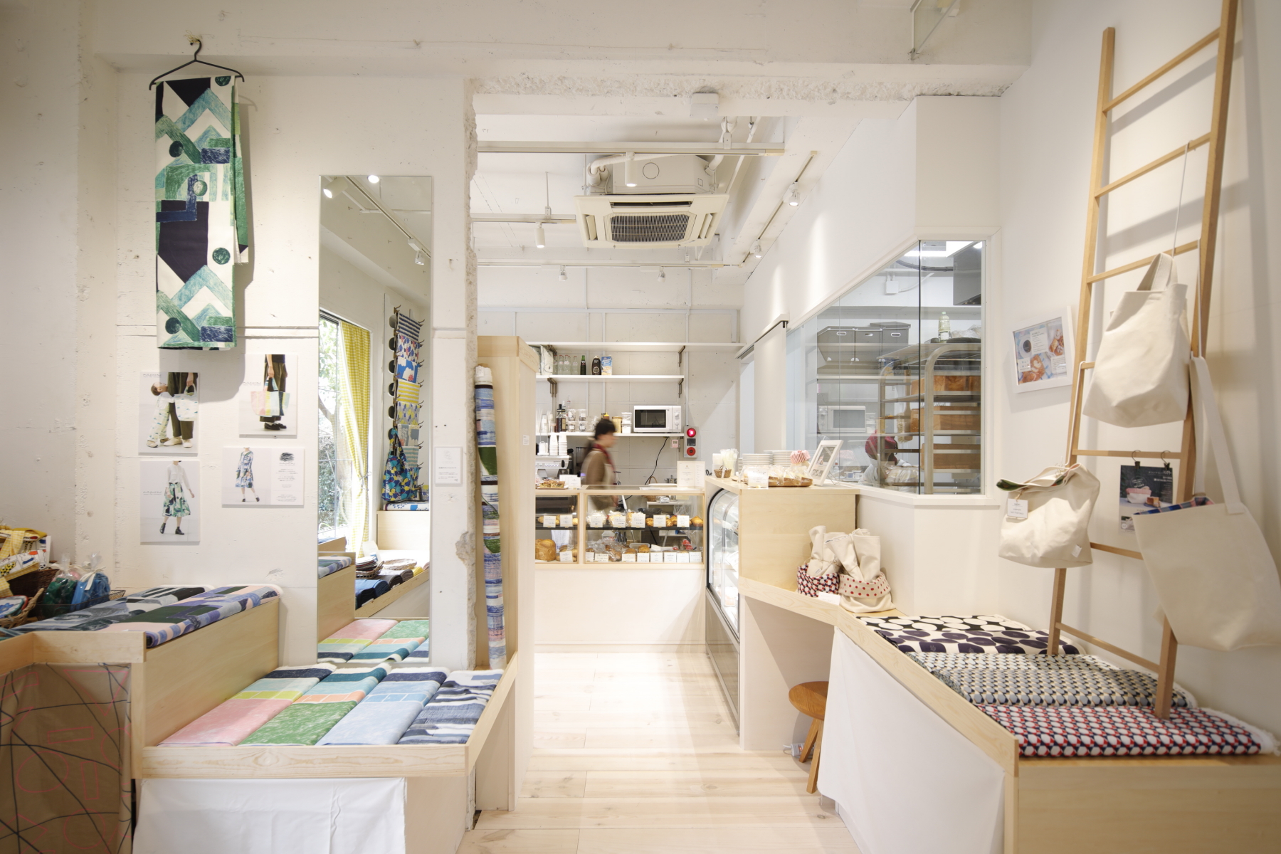 1階ではパンとエスプレッソとのパンやコーヒー、coccaのテキスタイル を購⼊できるほか、