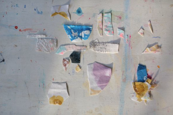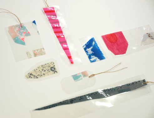 お楽しみは、新作テキスタイルを使ったワークショップ「布のかけらは自由なチャーム」。