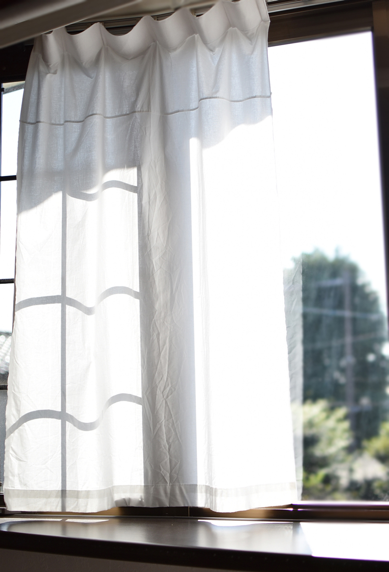 田巻:以前はカーテンのひだを作っていたのですが、ひだをつけると布幅が足らなくなってしまうので、作らずに買おうかなと思って悩んでいたとき、お店で「ひだなし」というのを見つけたんです。ひだなしにすると、おしゃれだし、布幅そのままでちょうどいいことに気づきました。90cm幅で窓半間分、4m買うと掃き出し窓一面に使えます!