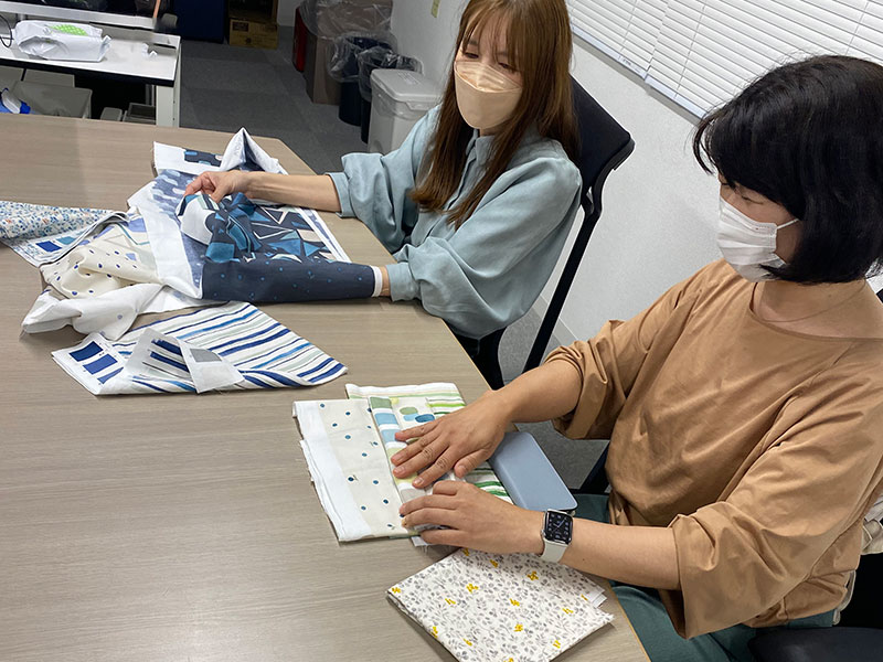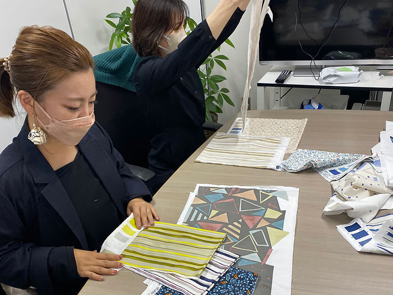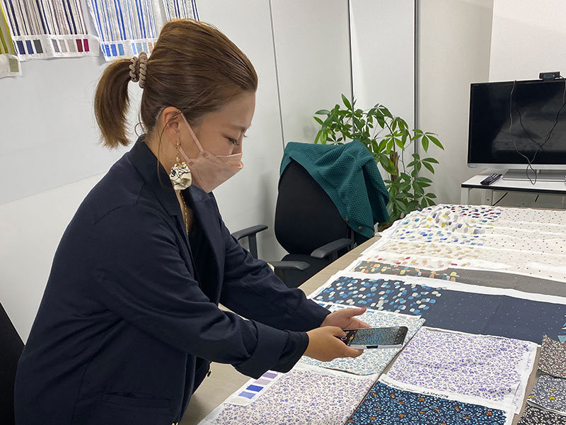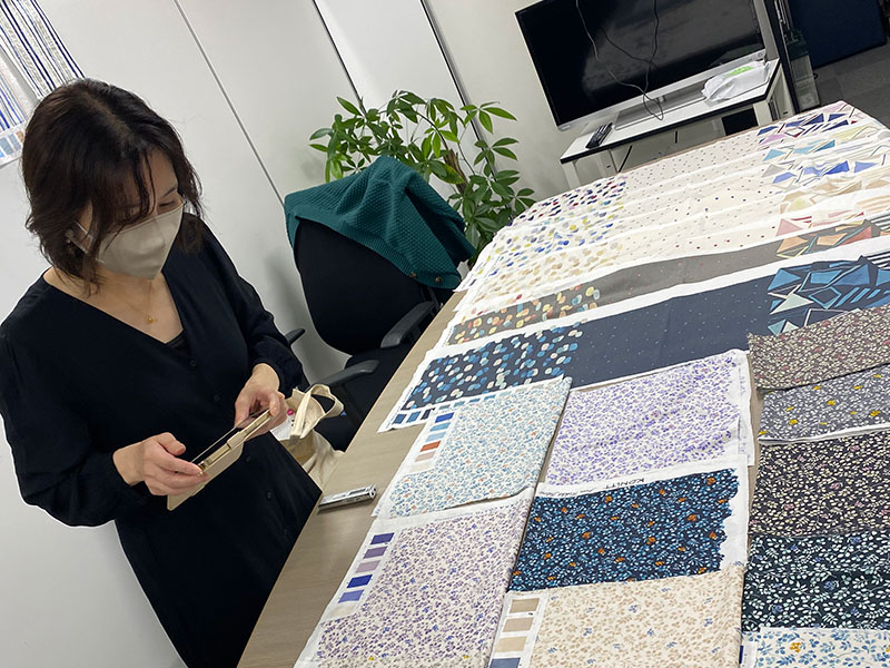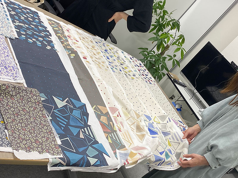 田巻:想いのつまった柄が布になって広がっているのを見て 大興奮でした!商品として本格的に仕上がっていく感じがワクワクしてとても嬉しいです。