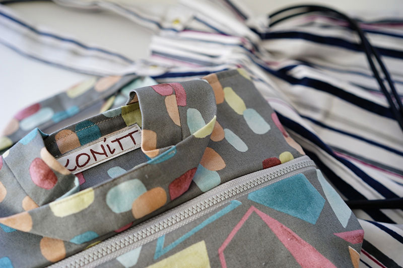田巻:もうひとつのバッグは、布耳のKONiTTをタグ代わりに使いたかったのと、3柄がせっかく一緒になっている生地なので、3柄とも入ったバッグを考えました。
