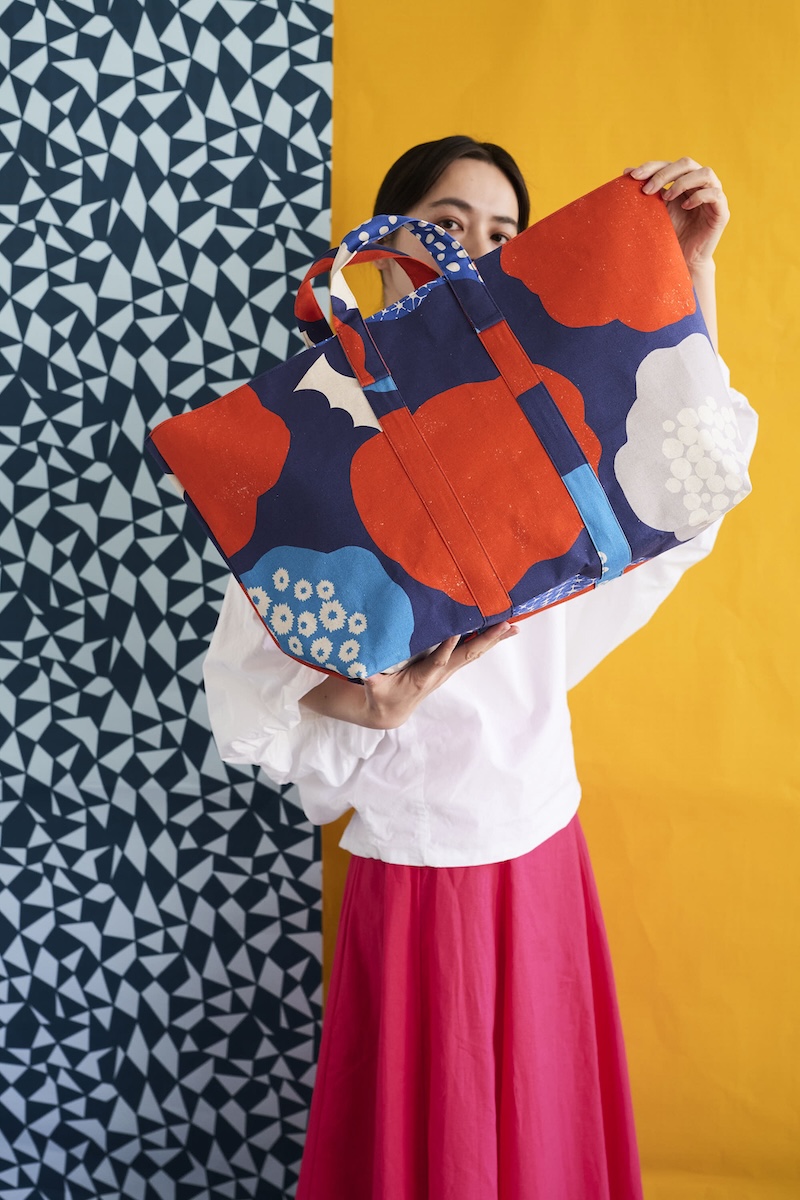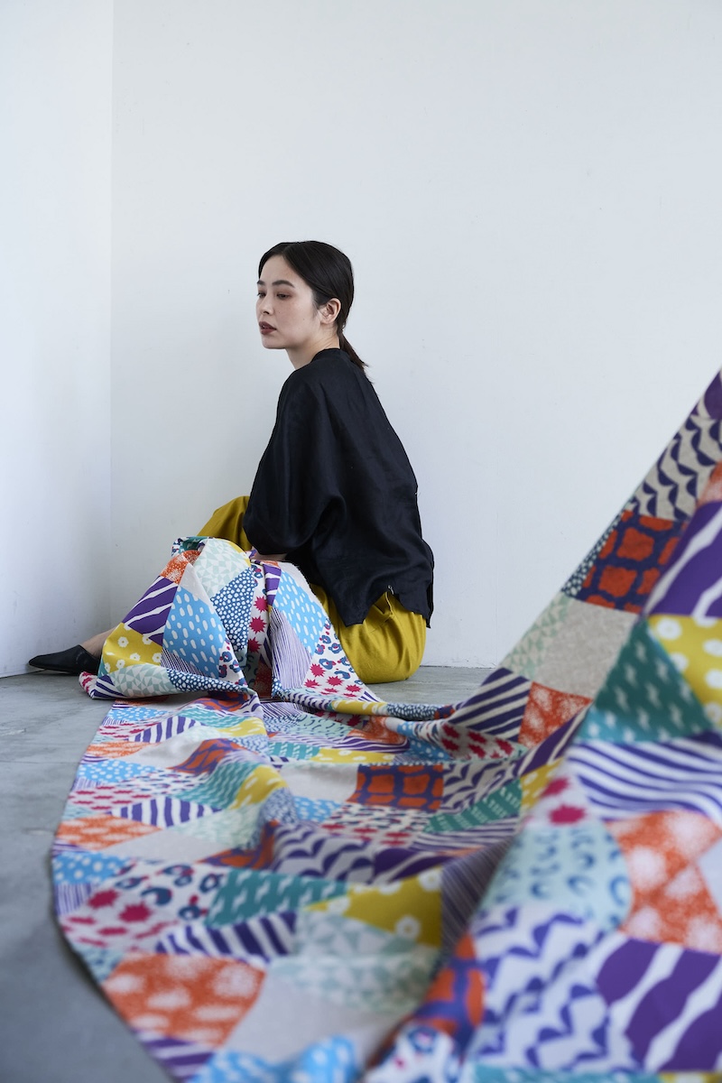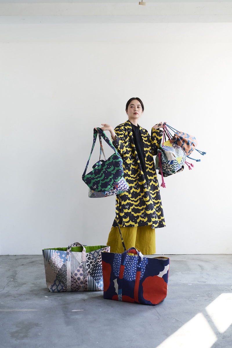 3柄目はechinoらしいモチーフを菱形に詰め込んだパッチワーク柄