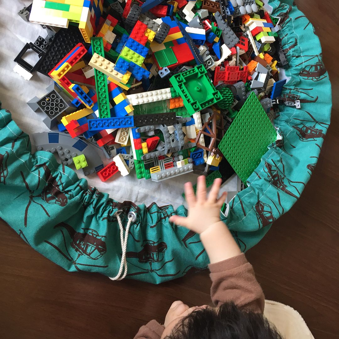 2つめは、お子さんが1人でお片付けできるようにと作られた巨大なレゴマット!