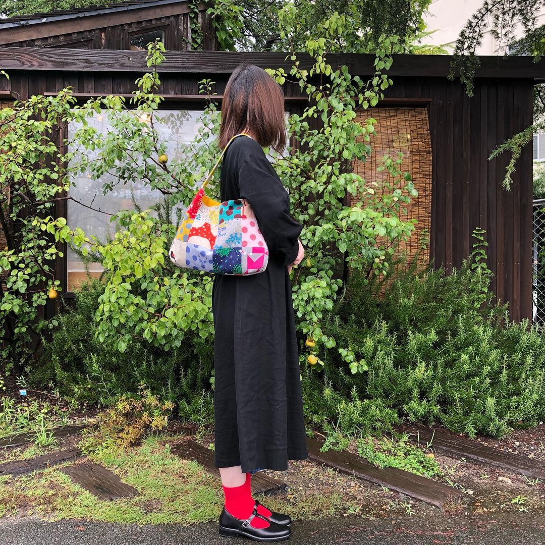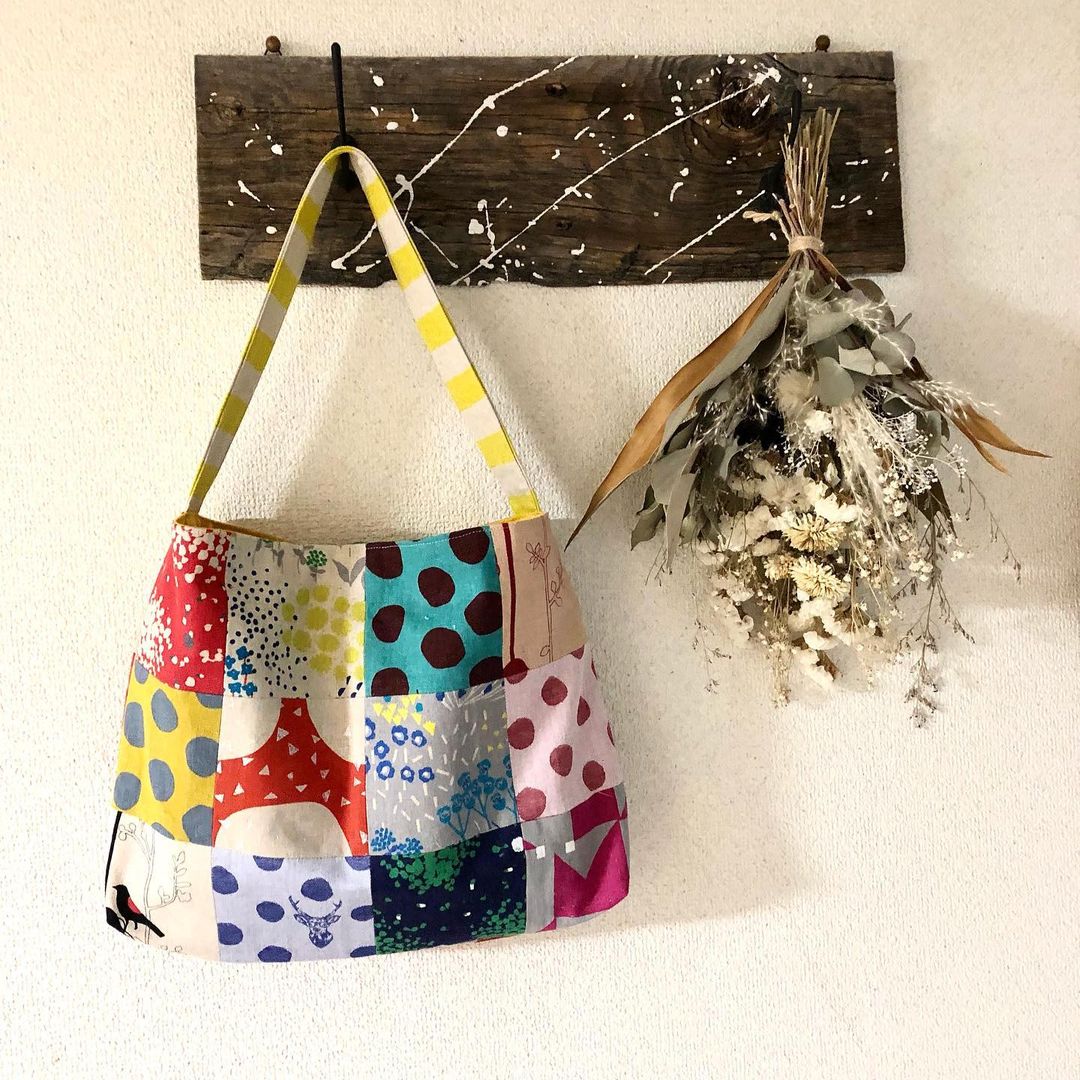 1つめは、echinoのたくさんの生地を使ったパッチワークバックを作ってくださったこちらのご投稿。