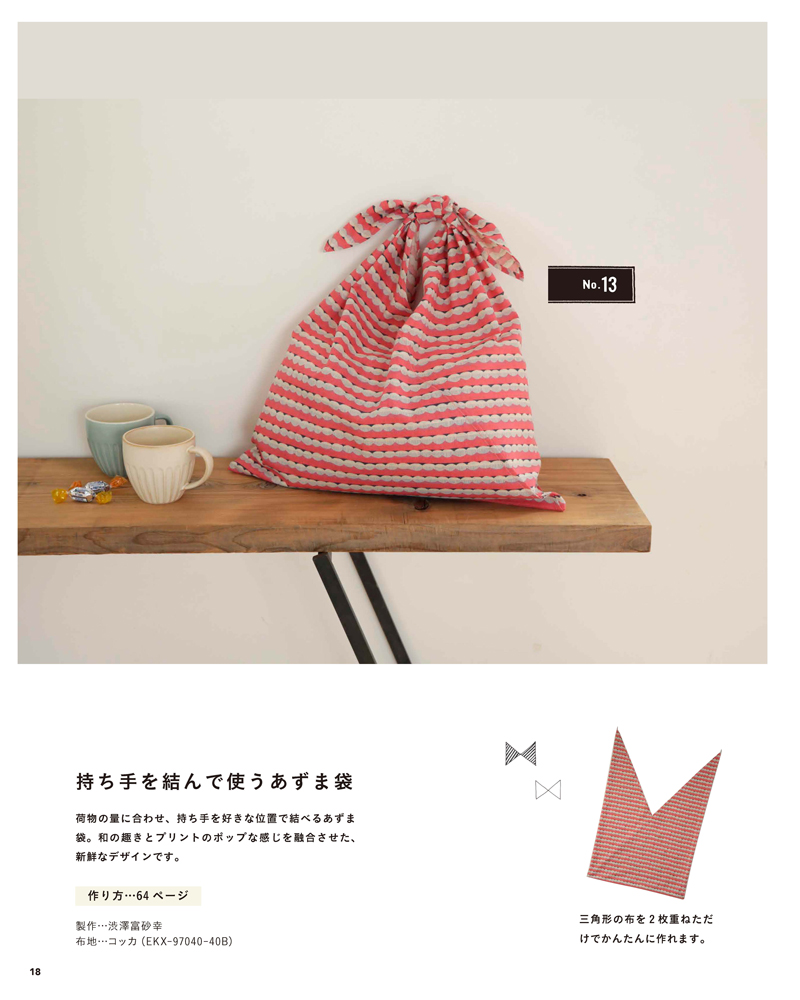「持ち手を結んで使うあずま袋」の布は、echinoのEKX-97040-40Bです。
