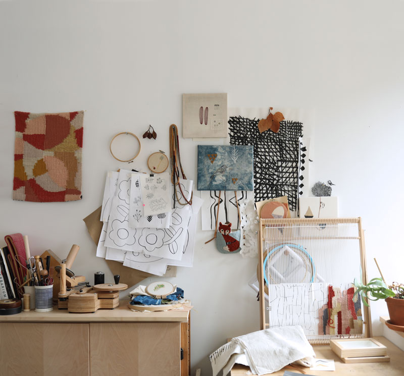 bookhouは私と夫のジョン・ブース、二人のスタジオです。私は主に布を使ったアイテム、バッグやポーチといった布製品や一点もののアートやキルト、ホームプロダクツを制作。シルクスクリーンや木版印刷、パッチワーク、刺繍といったサーフェスデザインの技術を用いています。夫が作っているのは、主に木材を使った家具や彫刻作品です。自分たちの創作テクニックやプロジェクトを紹介した本も何冊か出版していて、それと連動したワークショップをトロントのスタジオや世界中で開催しています。