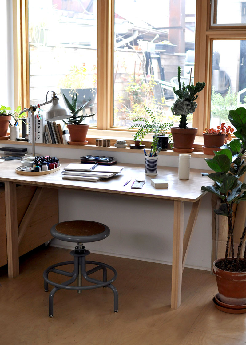 夫と子ども二人、家族と一緒に暮らしています。子どもたちはティーンエイジャー。トロントにある私たちのショップとスタジオの2階が住まいです。
