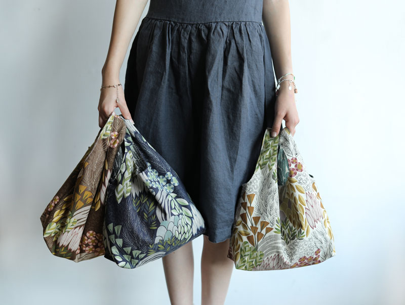 布が手元に届いてから、あれこれいろいろなアイテムを作って試しています。私はこの布の厚さがすごく好き。バッグやトートバッグといったアイテムにぴったりだと思いました。“Bloom by bookhou”は、パッチワークにも向いているんですよ。柄と柄を合わせたり、同じアイテムに違うパターンを持ってきたり。目下、キルトを制作中で、お洋服も作ってみようと思案中です。