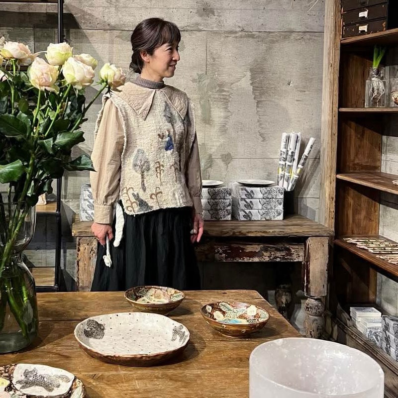 陶芸作家のミシャコシャです。陶器と布ってちょっと意外な組み合わせかもしれませんが、今回こうして布という新しい形にできたこと、ご縁をいただいてとても嬉しく思っています。陶器の雰囲気やぬくもりが、布でも楽しんでもらえたら嬉しいです。今後ともどうぞよろしくお願いいたします。
