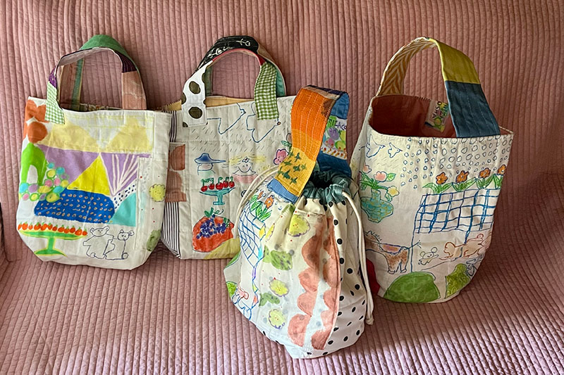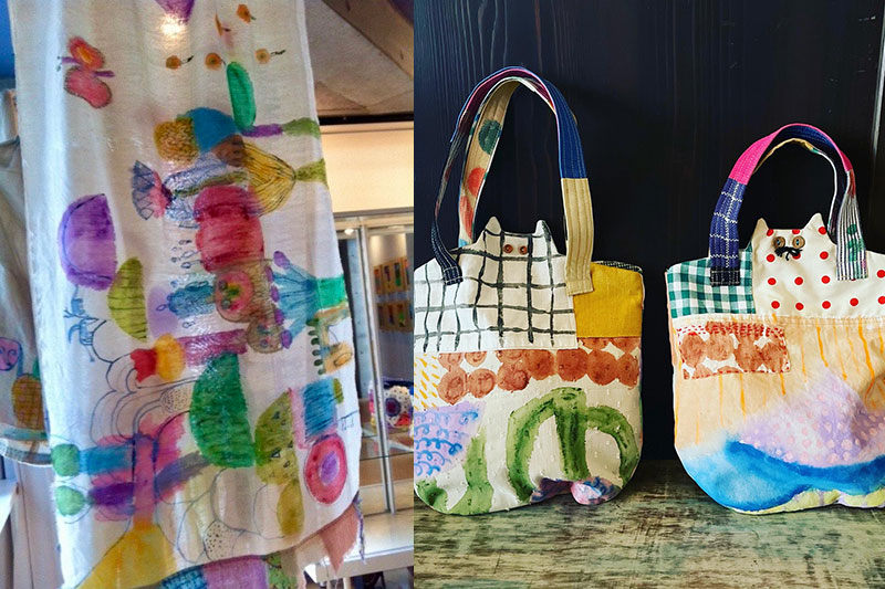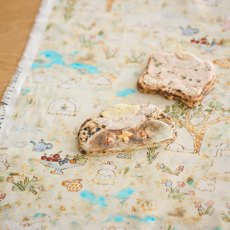 手作り市の友人とコラボで何か制作しようとなり、そのときに布に描ける絵の具に出会ったのがきっかけです。陶芸以外の素材で表現するのも楽しくて、そこから布作品も作るようになりました。