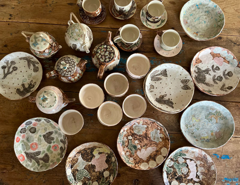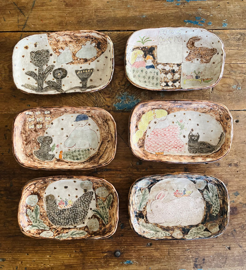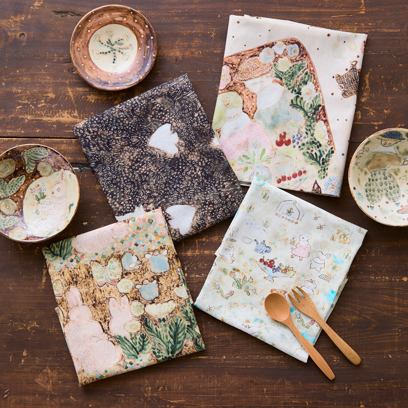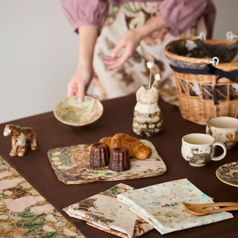 使う人が楽しい気持ちになったり、お料理や後片付けの時間がちょっと嬉しくなったりするような、そんな気持ちを届けられる作品を作りたいと思っています。絵柄から物語を想像できるような楽しさも大切にしています。