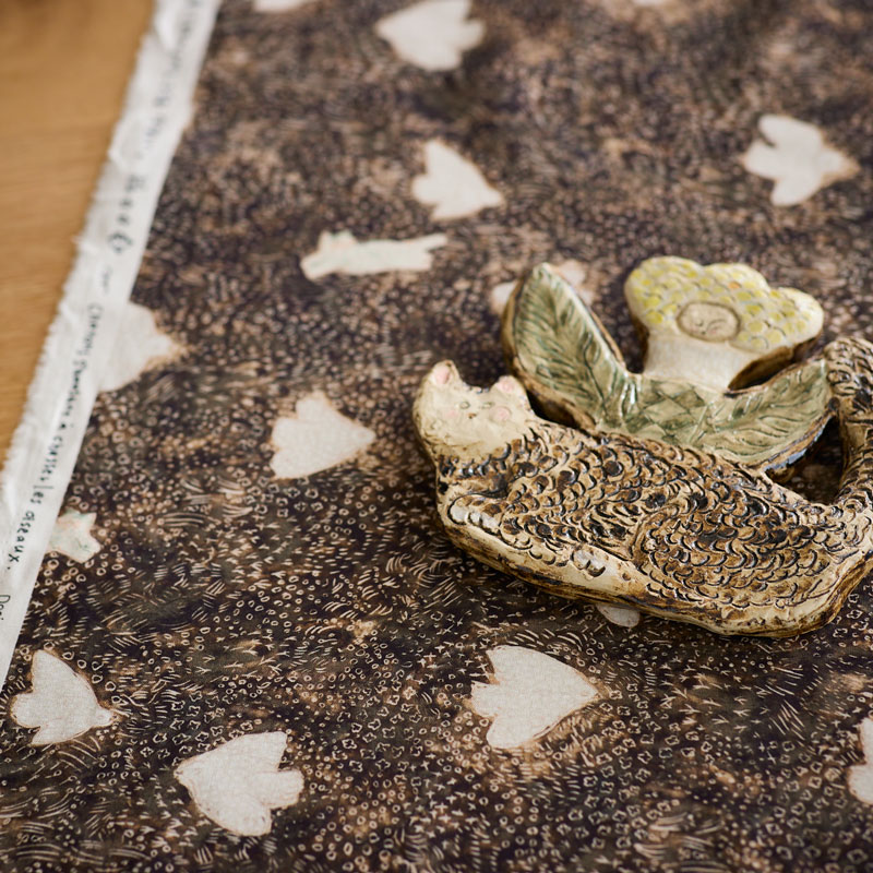 「mizacosha(ミシャコシャ)」という活動名で、動物や植物をモチーフに作品を手がける陶芸作家の高木美咲子さん。2025年、コッカと一緒に作ったテキスタイルコレクションがデビューします。温もりあふれる作品の背景と初めての布づくりについてお話を伺いました。