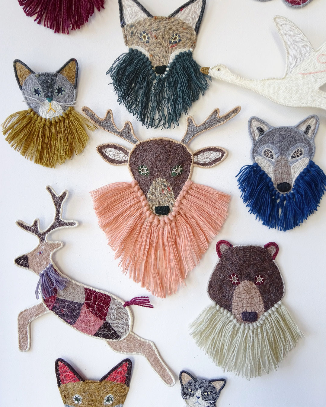アニマルシリーズを作り始めたのは、山形に暮らし始めて1年が経とうとしていた頃。自宅用に飾りたいものを作ろうと考えたときに鹿の剥製(ハンティングトロフィー)のようなイメージが頭に浮かびました。試しに作ってみたものがとても気に入って周りからの反応もよくて・・・。もともと子どもの頃から動物が好きだったのもあり、ほかの動物もいろいろと作るようになりました。