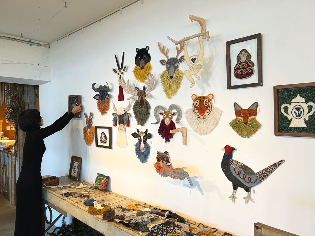 昨年は北海道でも個展を開催したのですが、その時はシカ、キツネ、クマ、ウサギ、ハクチョウなどその土地に馴染みある動物をメインに展示したり、猫雑貨を扱っているショップにはネコはもちろん、ライオン、トラ、マヌルネコ、サーバルキャットなどのネコ科の動物を多く展示しています。