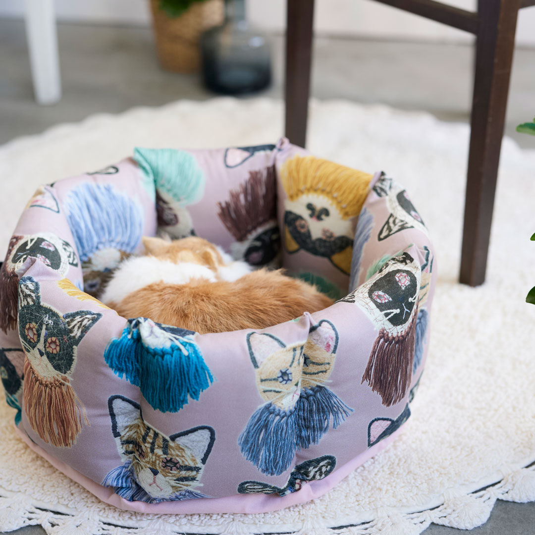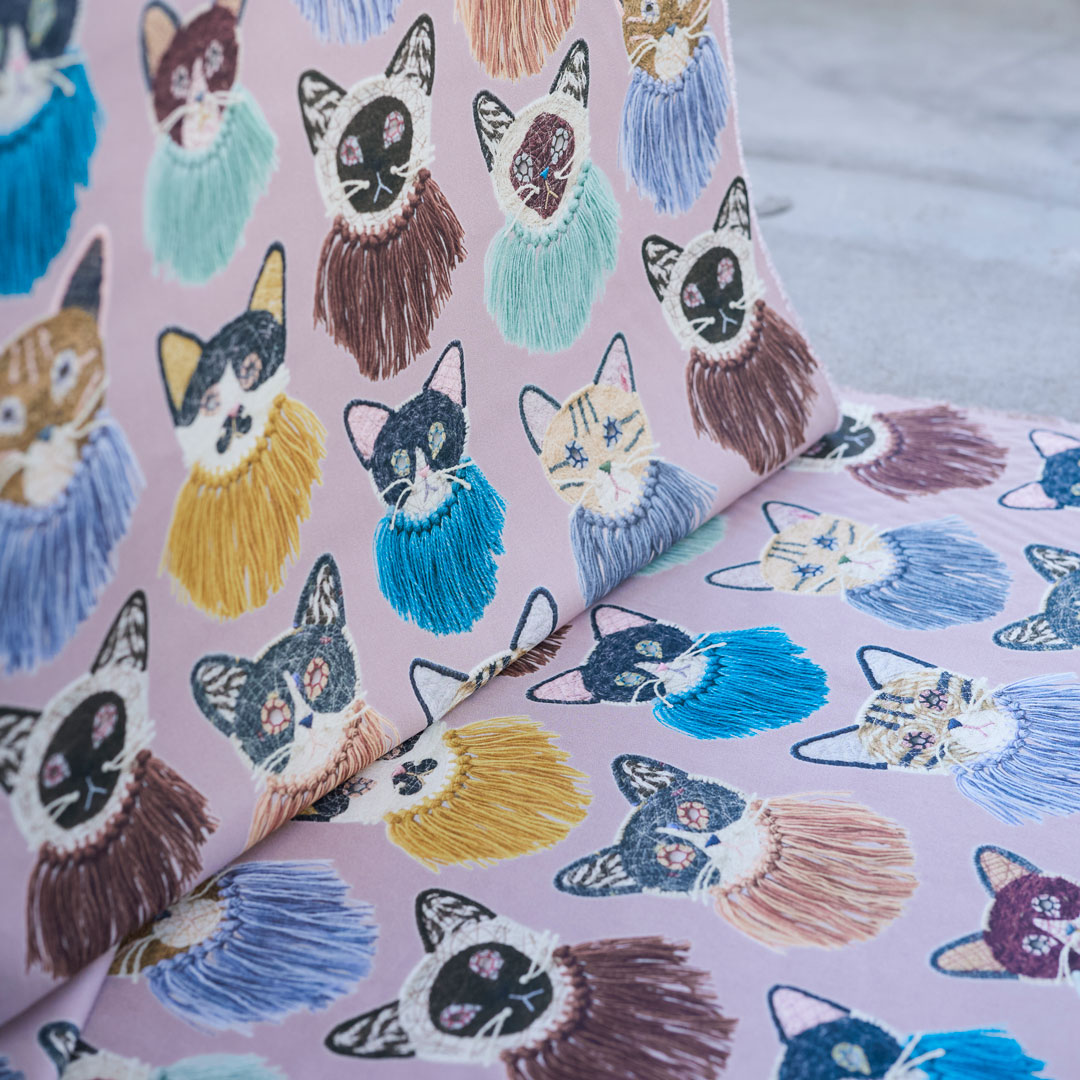 KF: ファブリックコレクションは、【we are cats】【in the sea】【hopping】【totems】の4柄がデビューします。各柄への想いやこだわりポイントをお聞かせください。