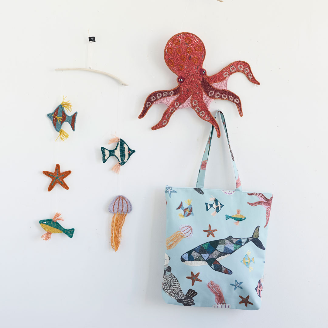 私の作品の中では珍しい海の生き物。海の中の浮遊感を感じるランダムの配置になっています。