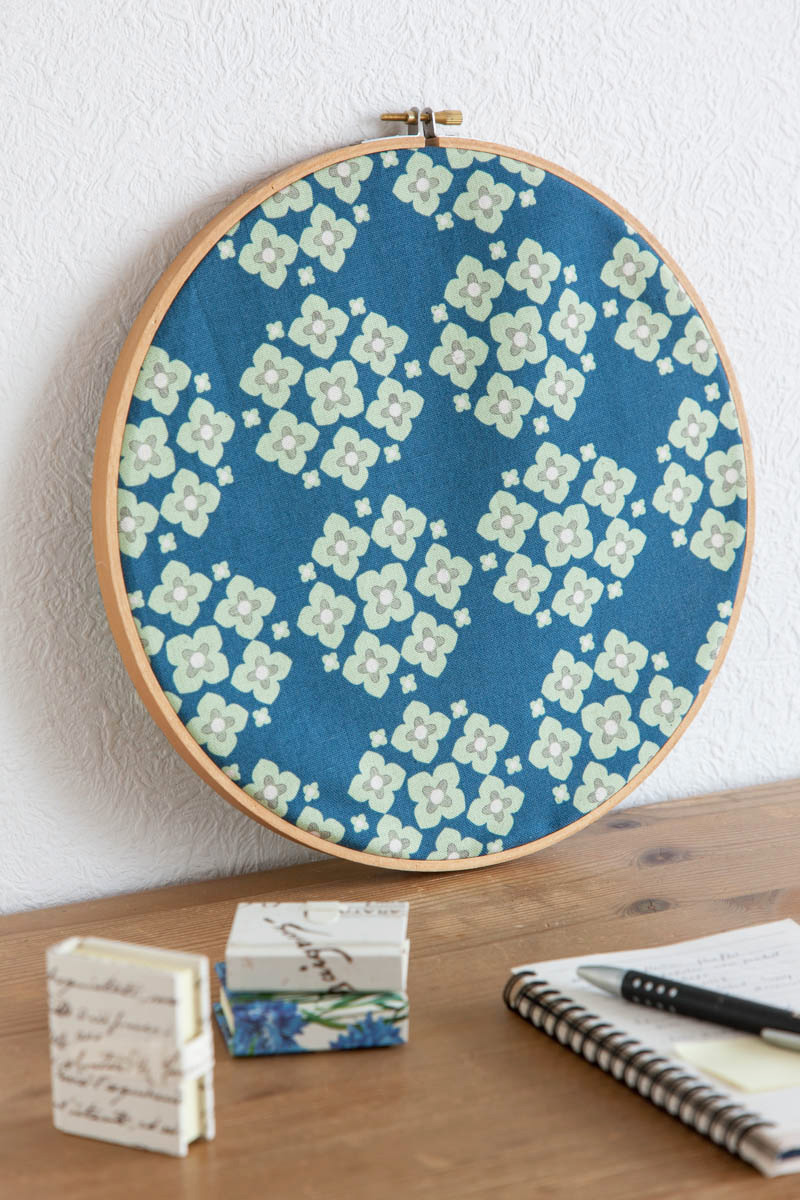「満開のアジサイをイメージした柄をヴィンテージカラーで表現してみました。バッグやキルト、テーブルリネン、そして洋服にもぴったりです」(エレン・ベイカーさん)