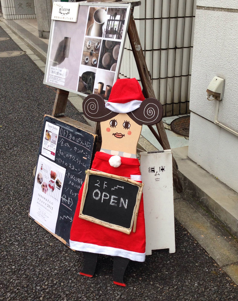 会場は、東京・浅草橋の「編ム庫」のギャラリー。サンタクロースの衣装を着た女の子が、このイベントのキャラクタ―、tenowaさん。イラストレーターの深澤ユリコさんの作品です。