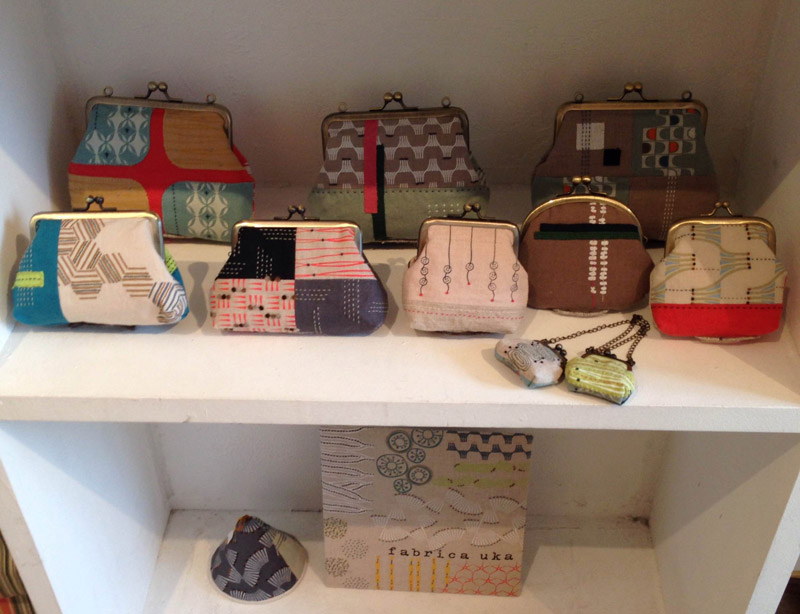作品はバッグのほか、がまぐちも人気の定番アイテム。