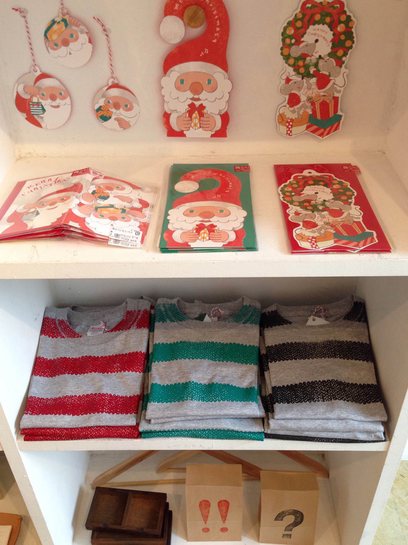 さすがイラストレーター、多彩なタッチで子ども向けのクリスマスカードも。下段のTシャツもDOLOCY’Sさんのデザインです。